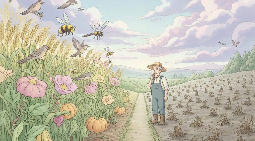 Fields with low biodiversity often experience higher pest pressure. Beneficial insects, birds, and soil organisms help control pest populations naturally. When these are missing, pests multiply quickly.